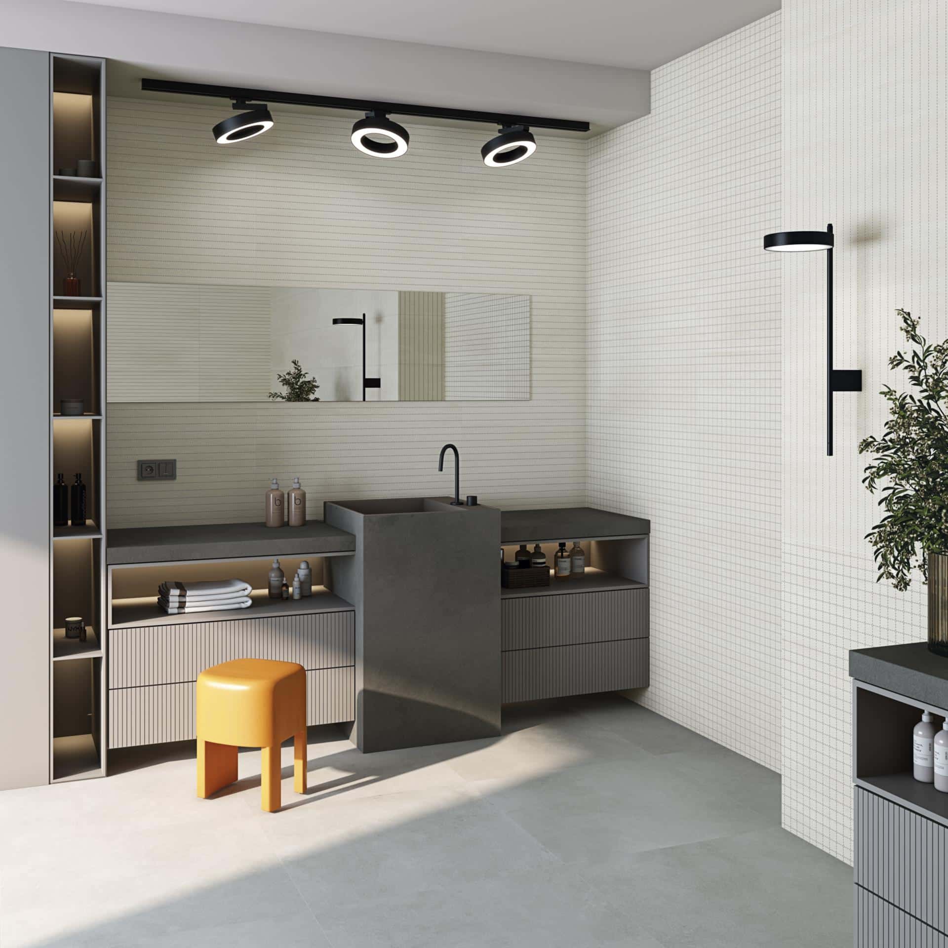 La Tandem est une série complète qui propose trois coloris de marbre qui s'accorde parfaitement avec les cinq coloris unis. Il y a une déclinaison très intéressante de format.